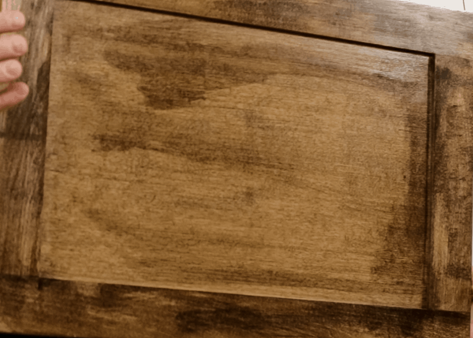 The above image features a test board showing the absorption rate of stain with different final sanding grits, ranging from 80-320, from left to right. The entire board was sanded at 80, then the following sections followed the Golden Rule. (80; 80-120; 80-120-180; and 80-120-180-240-320)